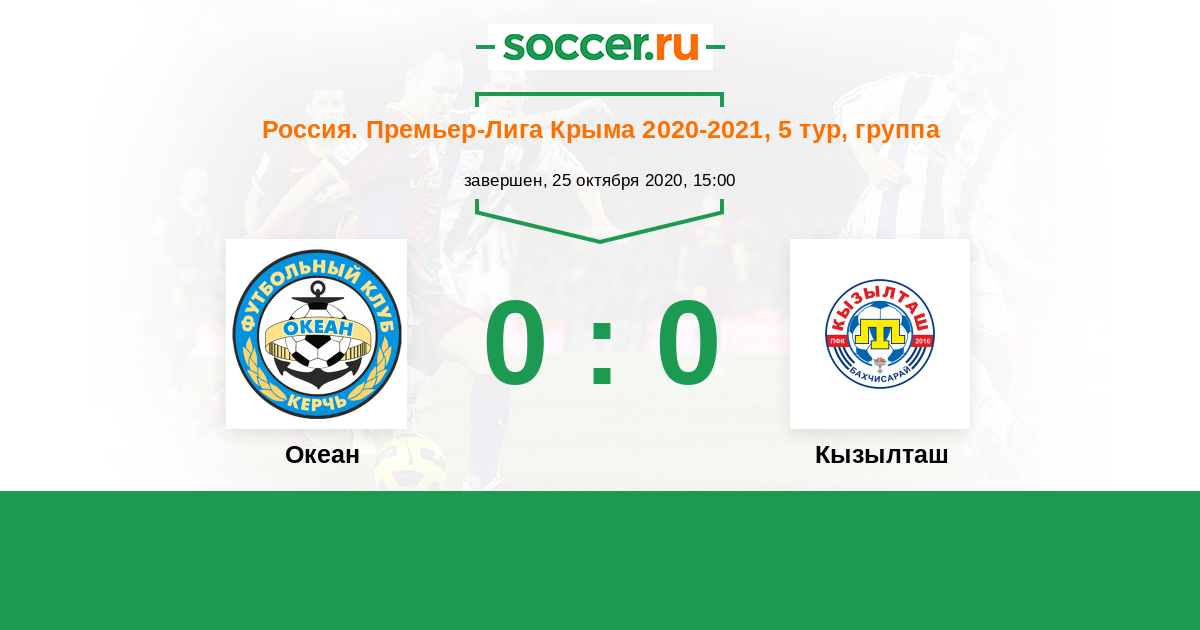 Россия. Премьер-Лига Крыма 07.10.2017 Океан Логотип футбольный клуб Океан (Керчь) 0:0 Логотип футбольный клуб Кызылташ (Бахчисарай) Кызылташ