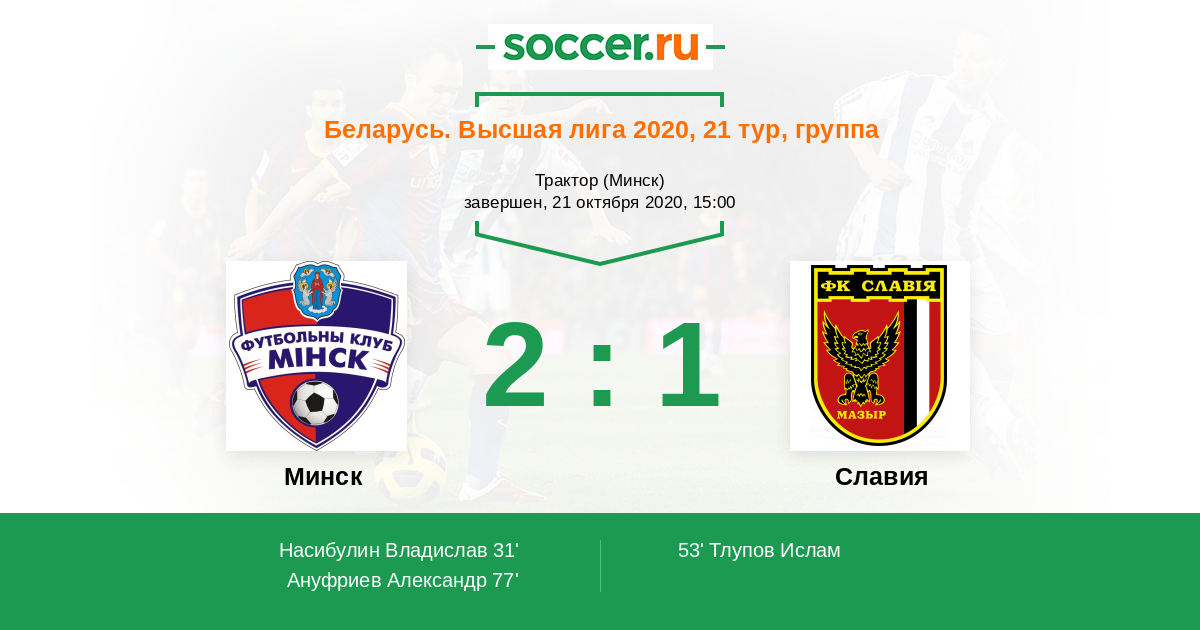 Беларусь. Высшая лига 11.06.2021 Славия Логотип футбольный клуб Славия (Мозырь) 1:2 Логотип футбольный клуб Минск Минск