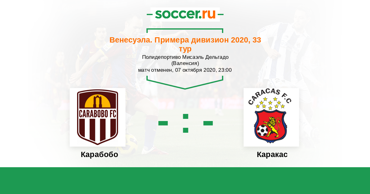 Венесуэла. Примера дивизион 12.10.2018 Каракас Логотип футбольный клуб Каракас 0:3 Логотип футбольный клуб Карабобо (Валенсия) Карабобо
