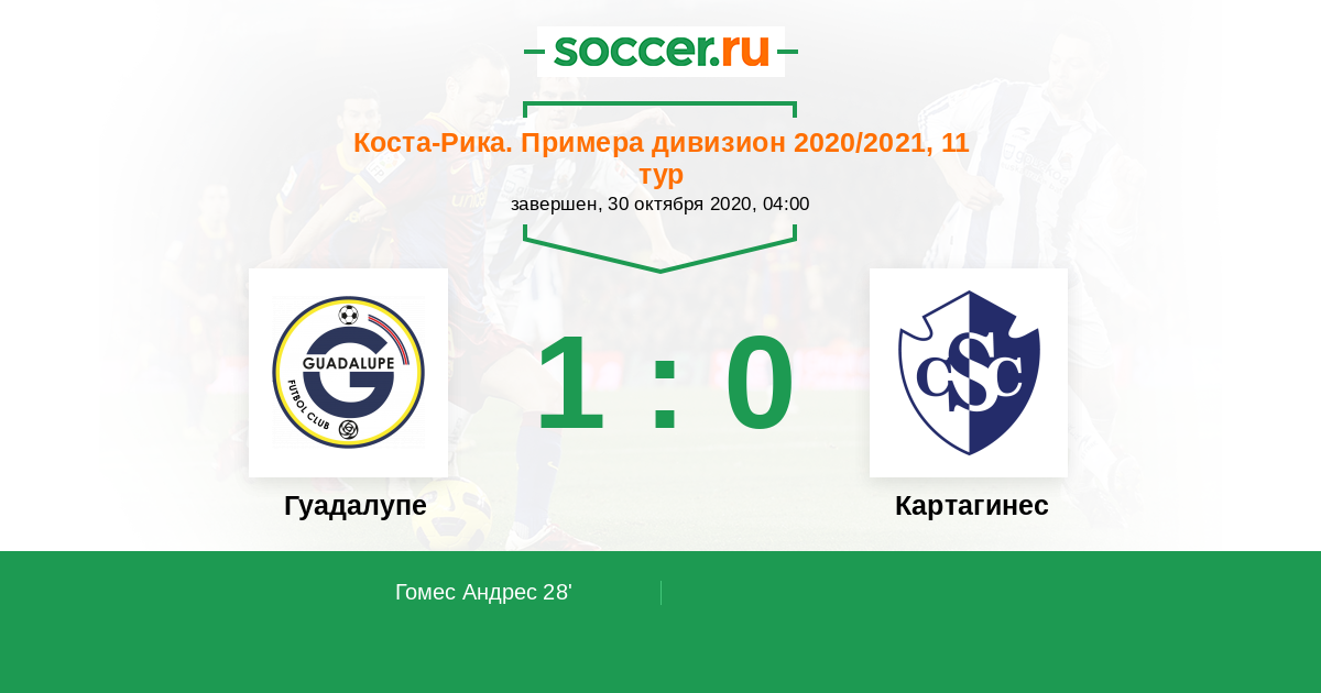 Коста-Рика. Примера дивизион 27.10.2021 Гуадалупе Логотип футбольный клуб Гуадалупе 1:1 Логотип футбольный клуб Картахинес (Карфаген) Картахинес