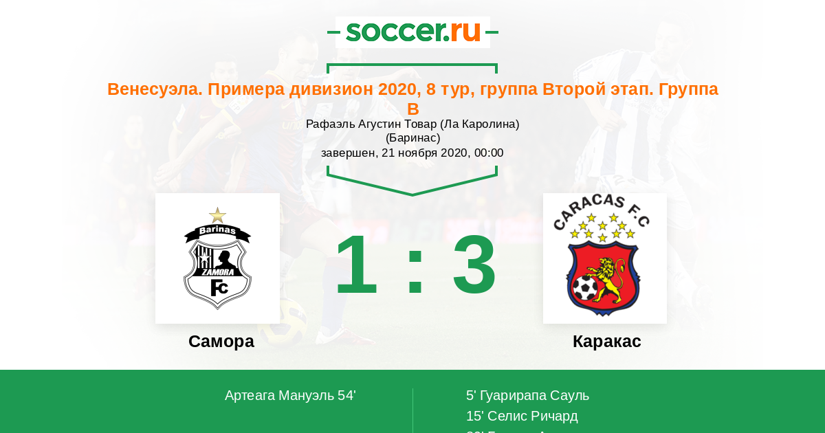 Венесуэла. Примера дивизион 20.11.2014 Замора Логотип футбольный клуб Замора (Баринас) 2:1 Логотип футбольный клуб Каракас Каракас