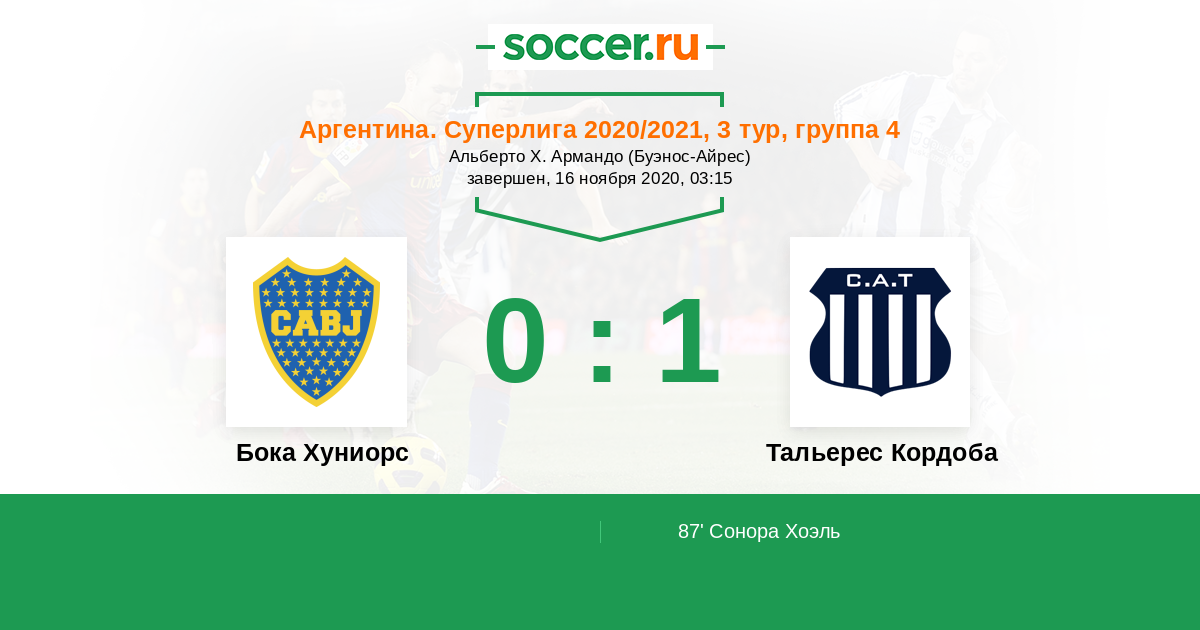 Аргентина. Суперлига 07.12.2020 Тальерес Кордоба Логотип футбольный клуб Тальерес Кордоба 0:0 Логотип футбольный клуб Бока Хуниорс (Буэнос-Айрес) Бока Хуниорс
