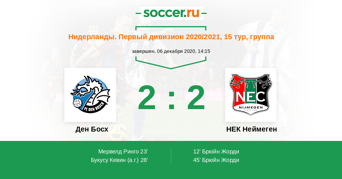 Нидерланды. Первый дивизион 24.04.2015 Ден Босх Логотип футбольный клуб Ден Босх (Хертогенбос) 1:3 Логотип футбольный клуб НЕК Неймеген НЕК Неймеген
