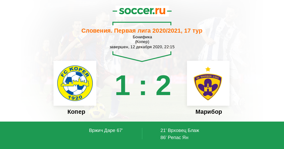 Словения. Первая Лига 11.03.2021 Марибор Логотип футбольный клуб Марибор 4:2 Логотип футбольный клуб Копер Копер