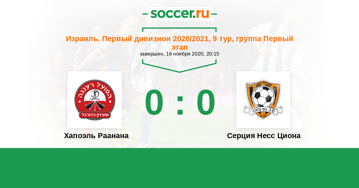 Израиль. Премьер-Лига 18.06.2020 Серция Несс Циона Логотип футбольный клуб Серция Несс Циона 2:1 Логотип футбольный клуб Хапоэль Раанана Хапоэль Раанана
