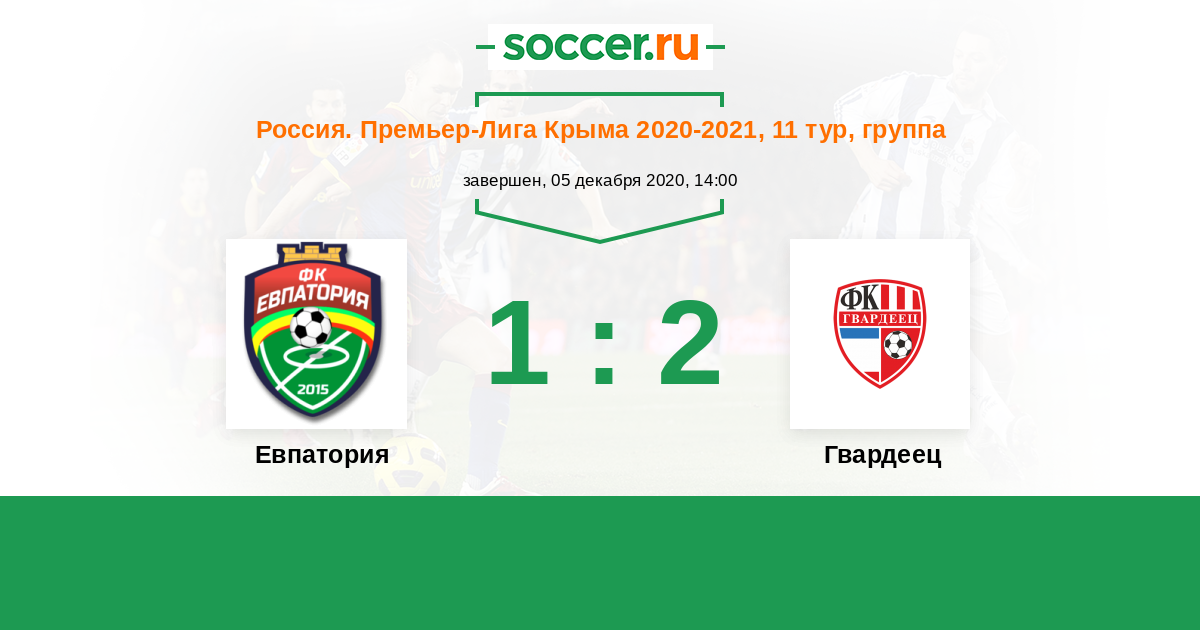 Россия. Премьер-Лига Крыма 11.11.2018 Евпатория Логотип футбольный клуб Евпатория 0:1 Логотип футбольный клуб Гвардеец (Аграрное) Гвардеец