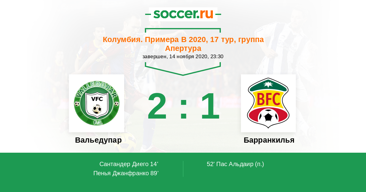 Колумбия. Примера B 19.07.2014 Вальедупар Логотип футбольный клуб Вальедупар 1:0 Логотип футбольный клуб Барранкилья Барранкилья