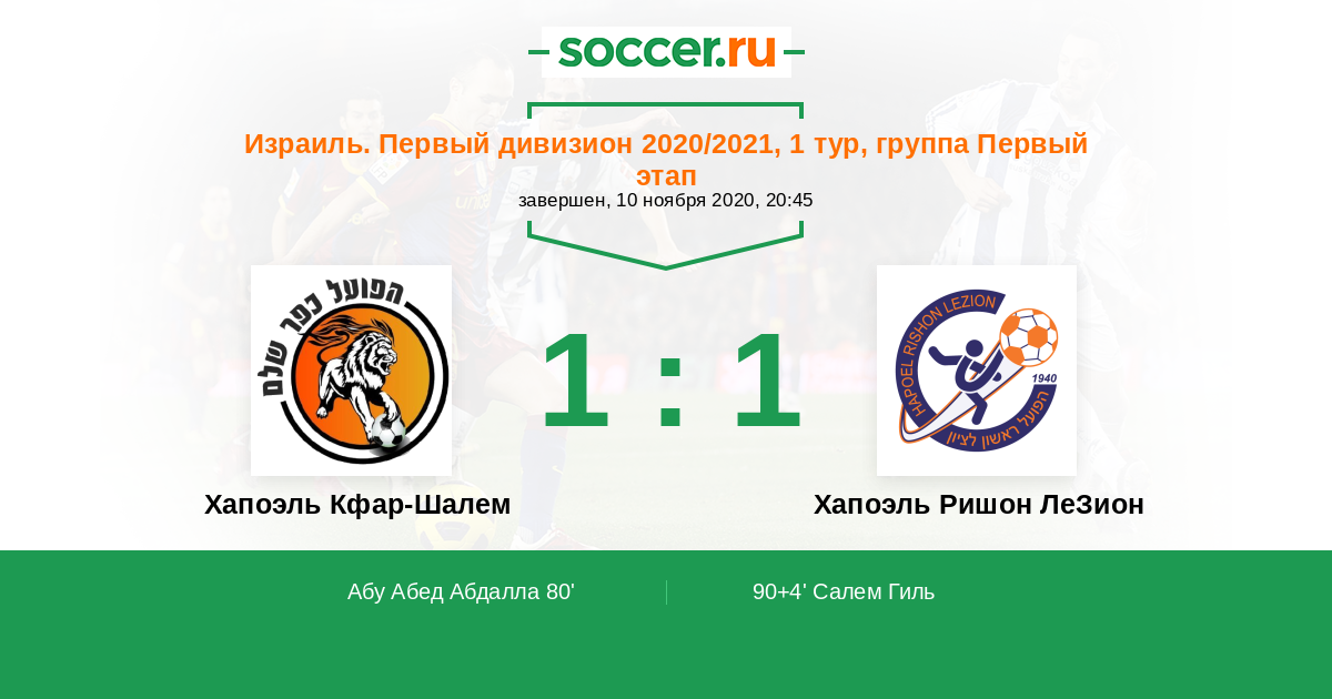 Хапоэль Кфар-Шалем Хапоэль Ришон ЛеЗион