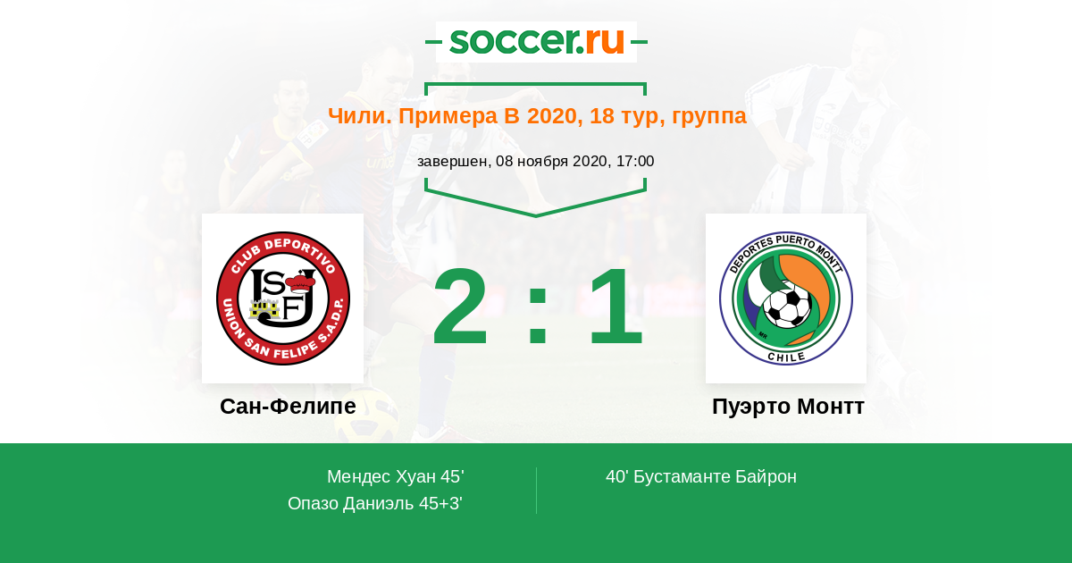 Чили. Примера В 13.09.2020 Пуэрто Монтт Логотип футбольный клуб Пуэрто Монтт 1:0 Логотип футбольный клуб Сан-Фелипе (Сан Фелипе) Сан-Фелипе