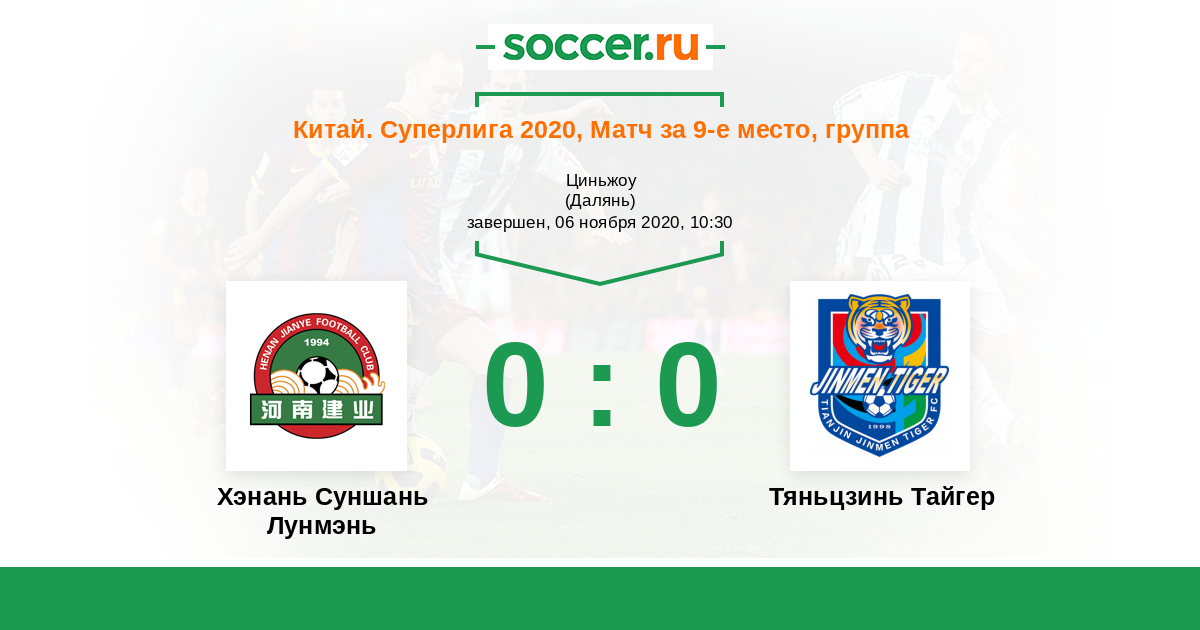 Китай. Суперлига 10.11.2020 Тяньцзинь Тайгер Логотип футбольный клуб Тяньцзинь Тайгер 1:2 Логотип футбольный клуб Хэнань Суншань Лунмэнь (Чжэнчжоу) Хэнань Суншань Лунмэнь