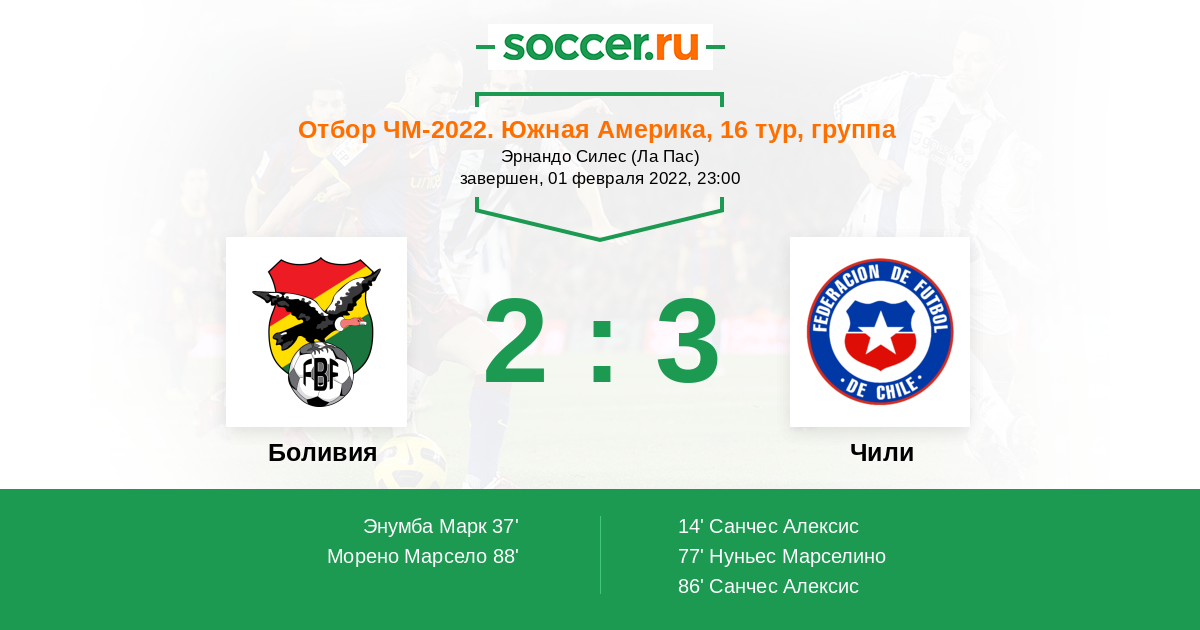От 5-го места, позволяющего выйти в стыки, Чили отстает на 3 очка. От 4-го, дающего прямую путевку в Катар, на 4, так что Чили ещё поборется, но для этого нужно побеждать Боливию.