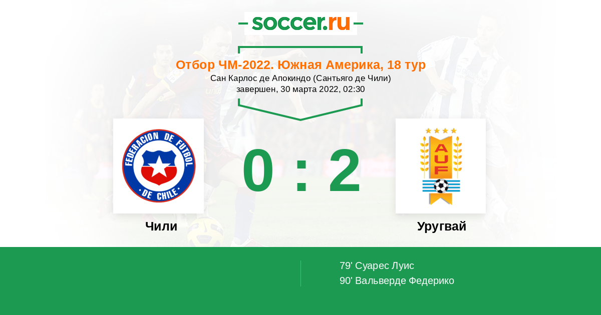 В этом матче между командами Чили и Уругвая должен стать главным для хозяев поля. Только победа и потеря очков у конкурентов может помочь хозяевам занять пятое место. Которая позволит ей продолжать борьбу за выход на чемпионат мира.