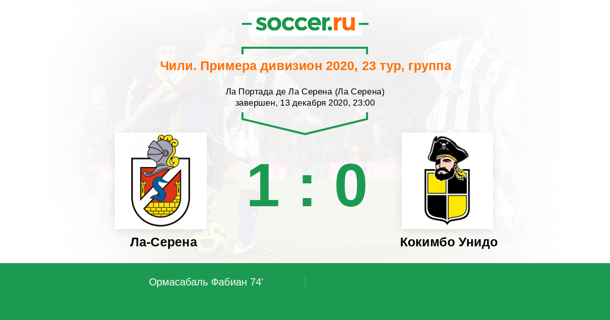 Чили. Примера В 07.09.2014 Ла-Серена Логотип футбольный клуб Ла-Серена 0:3 Логотип футбольный клуб Кокимбо Унидо Кокимбо Унидо