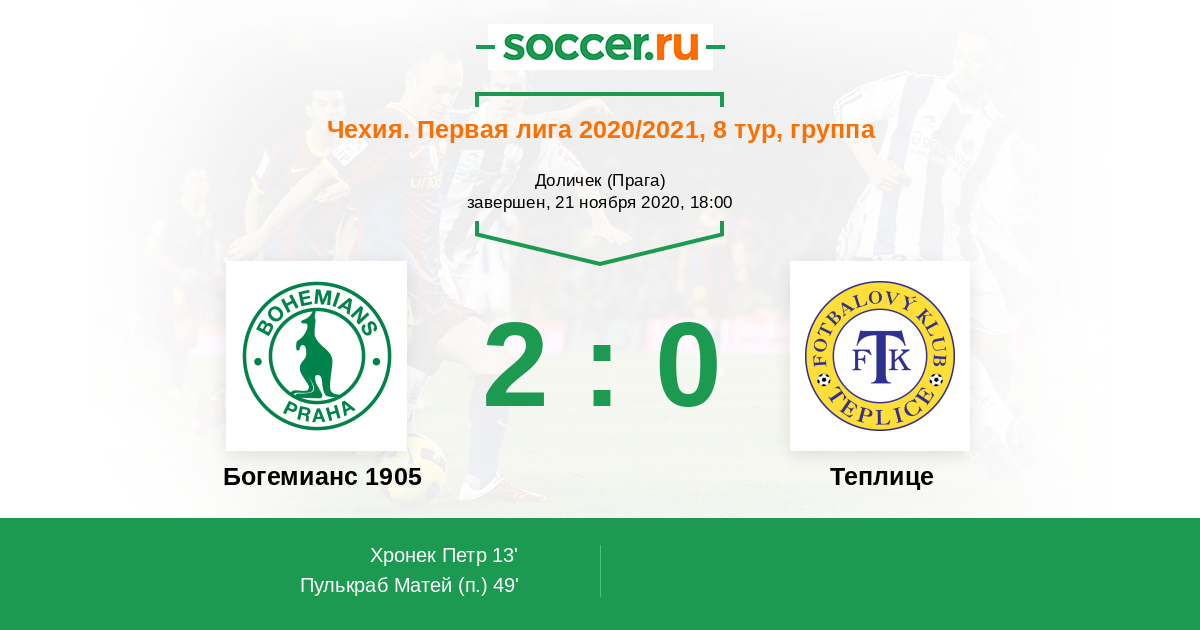 Чехия. Первая Лига 21.03.2021 Теплице Логотип футбольный клуб Теплице 1:1 Логотип футбольный клуб Богемианс 1905 (Прага) Богемианс 1905