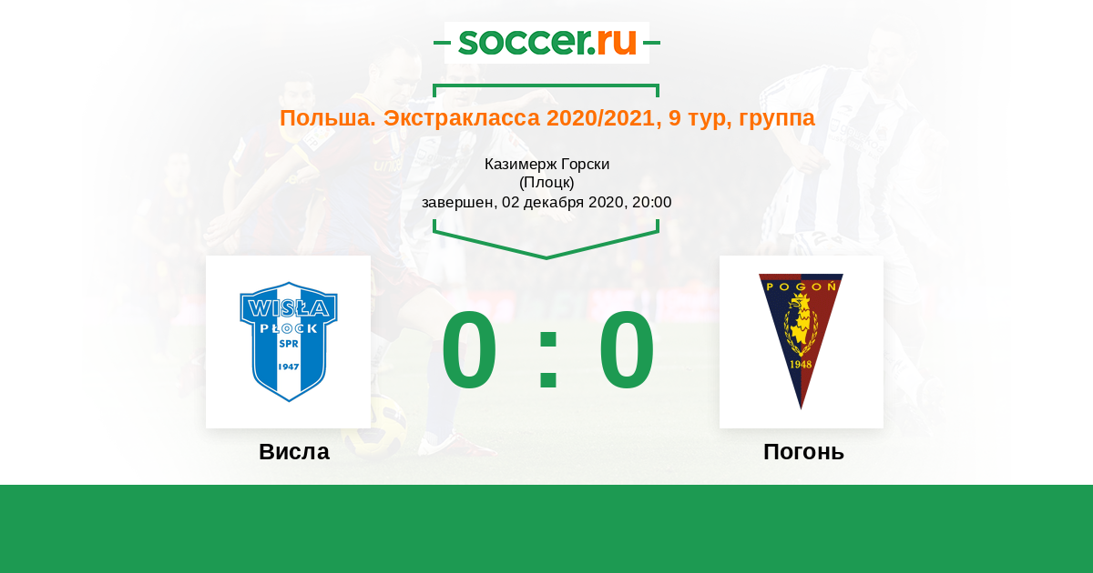 Польша. Кубок 20.11.2020 Висла Логотип футбольный клуб Висла (Плоцк) 1:1 Логотип футбольный клуб Погонь (Щецин) Погонь
