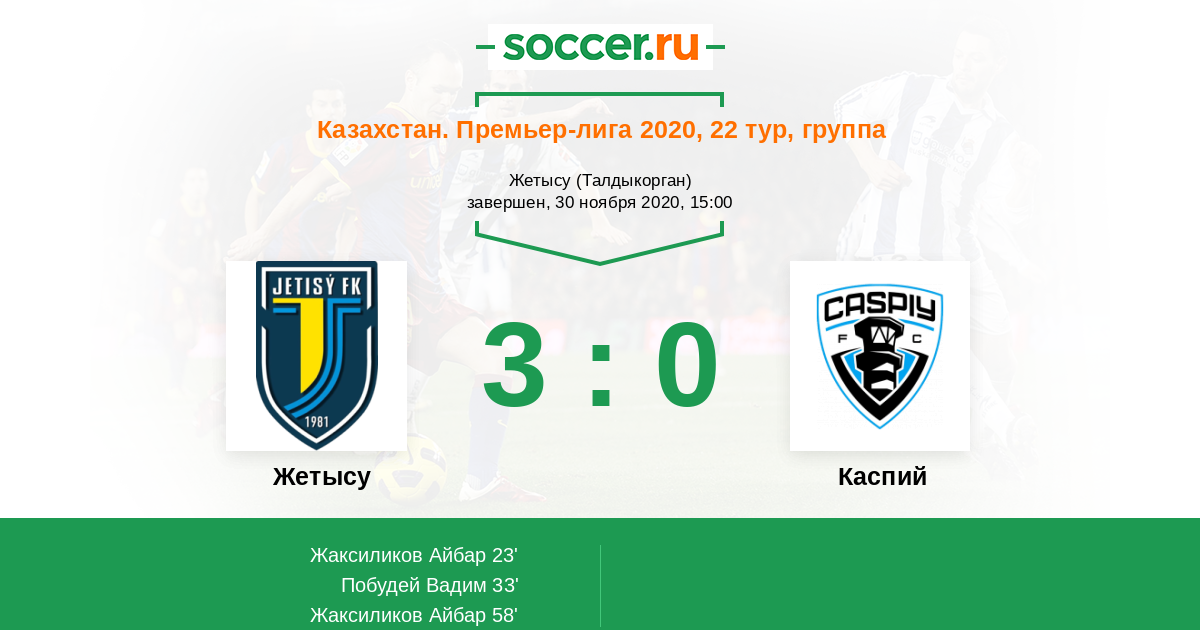 Казахстан. Премьер-лига 16.07.2023 Каспий Логотип футбольный клуб Каспий (Актау) 1:2 Логотип футбольный клуб Жетысу (Талдыкорган) Жетысу