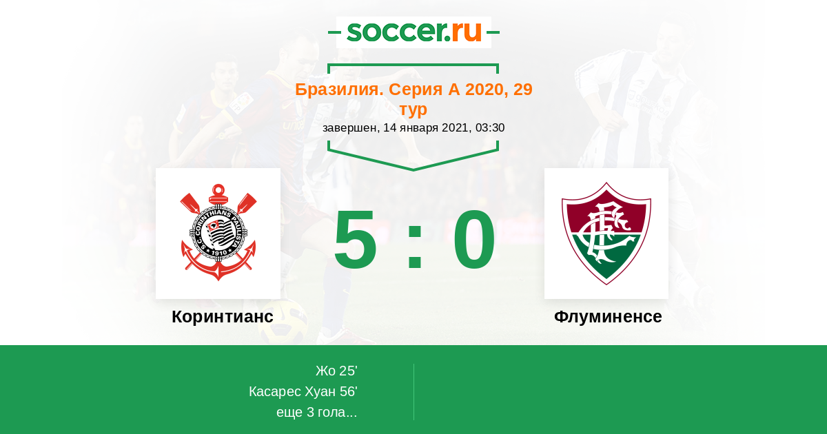 Бразилия. Серия А 13.09.2020 Флуминенсе Логотип футбольный клуб Флуминенсе (Рио-де-Жанейро) 2:1 Логотип футбольный клуб Коринтианс (Сан-Паулу) Коринтианс