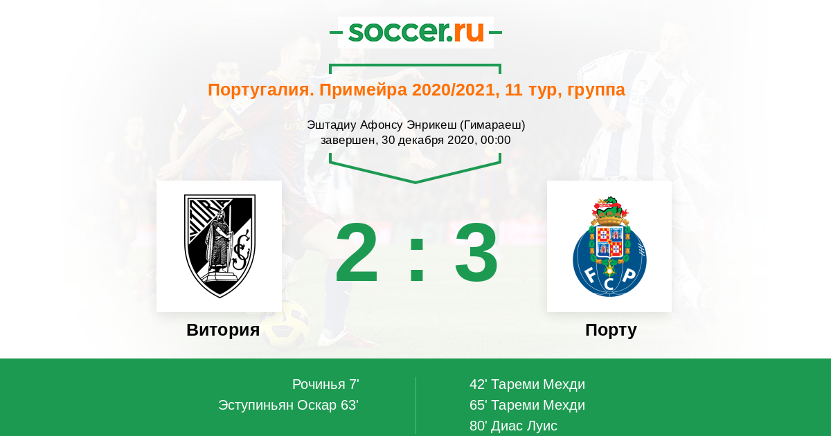 Португалия. Примейра 16.02.2020 Витория Логотип футбольный клуб Витория (Гимараеш) 1:2 Логотип футбольный клуб Порту Порту