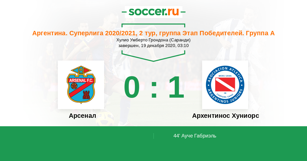 Аргентина. Суперлига 29.07.2021 Арсенал Логотип футбольный клуб Арсенал (Саранди) 1:0 Логотип футбольный клуб Архентинос Хуниорс (Буэнос-Айрес) Архентинос Хуниорс