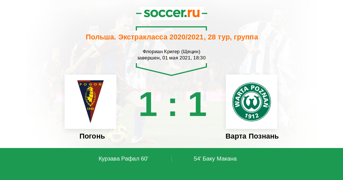 Польша. Экстракласса 01.08.2021 Варта Познань Логотип футбольный клуб Варта Познань 1:1 Логотип футбольный клуб Погонь (Щецин) Погонь