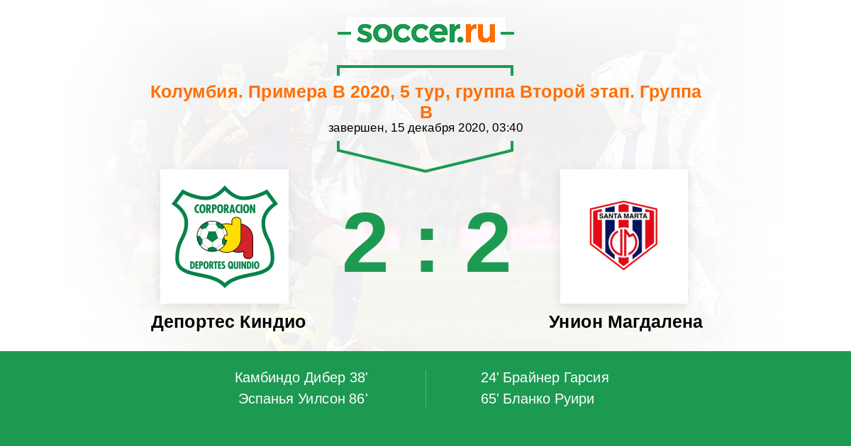 Колумбия. Примера B 20.10.2014 Депортес Киндио Логотип футбольный клуб Депортес Киндио (Армения) 1:1 Логотип футбольный клуб Унион Магдалена (Санта Марта) Унион Магдалена