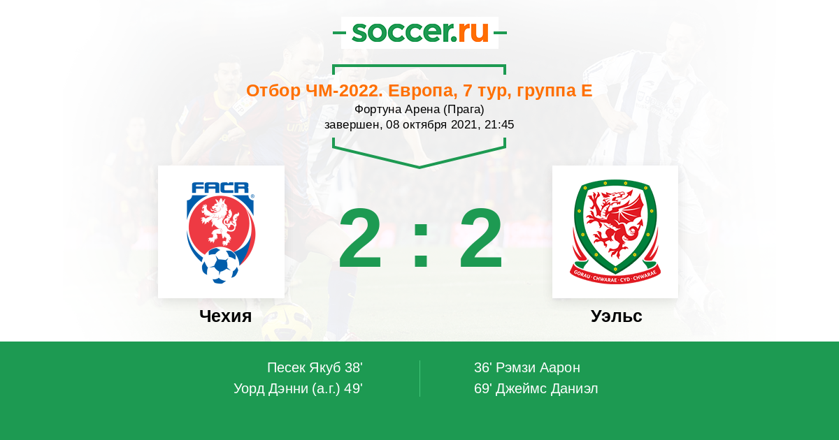 Почему такой прогноз? Это ключевой матч в борьбе за второе место в группе. На своём поле чехи должны справиться с валлийцами. При этом обе команды будут играть осторожно, и вряд ли будет забито много голов.