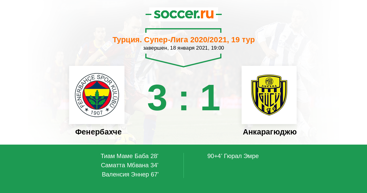 Турция. Суперлига 15.02.2020 Анкарагюджю Логотип футбольный клуб Анкарагюджю 2:1 Логотип футбольный клуб Фенербахче (Стамбул) Фенербахче