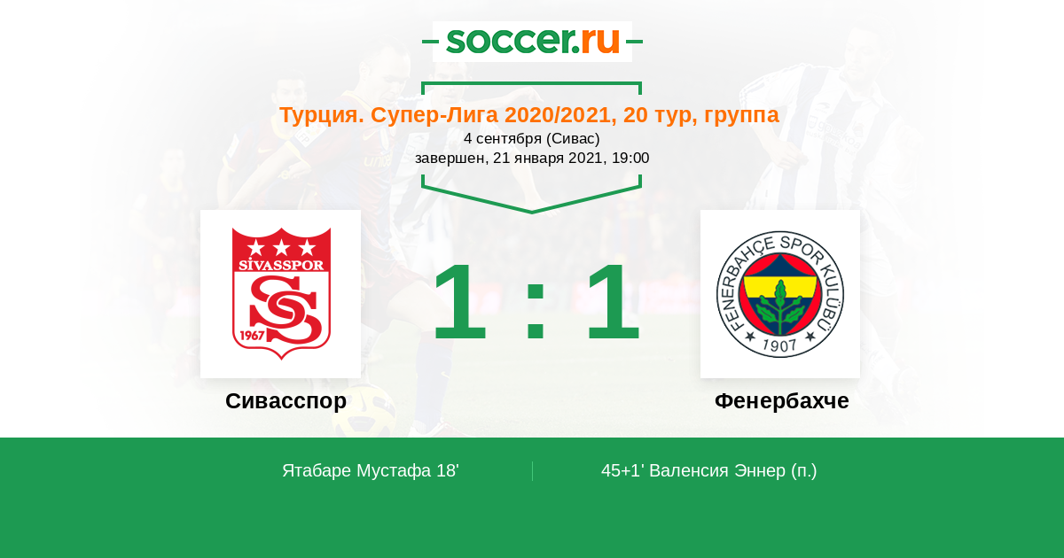 Турция. Суперлига 22.01.2022 Сивасспор Логотип футбольный клуб Сивасспор 1:1 Логотип футбольный клуб Фенербахче (Стамбул) Фенербахче
