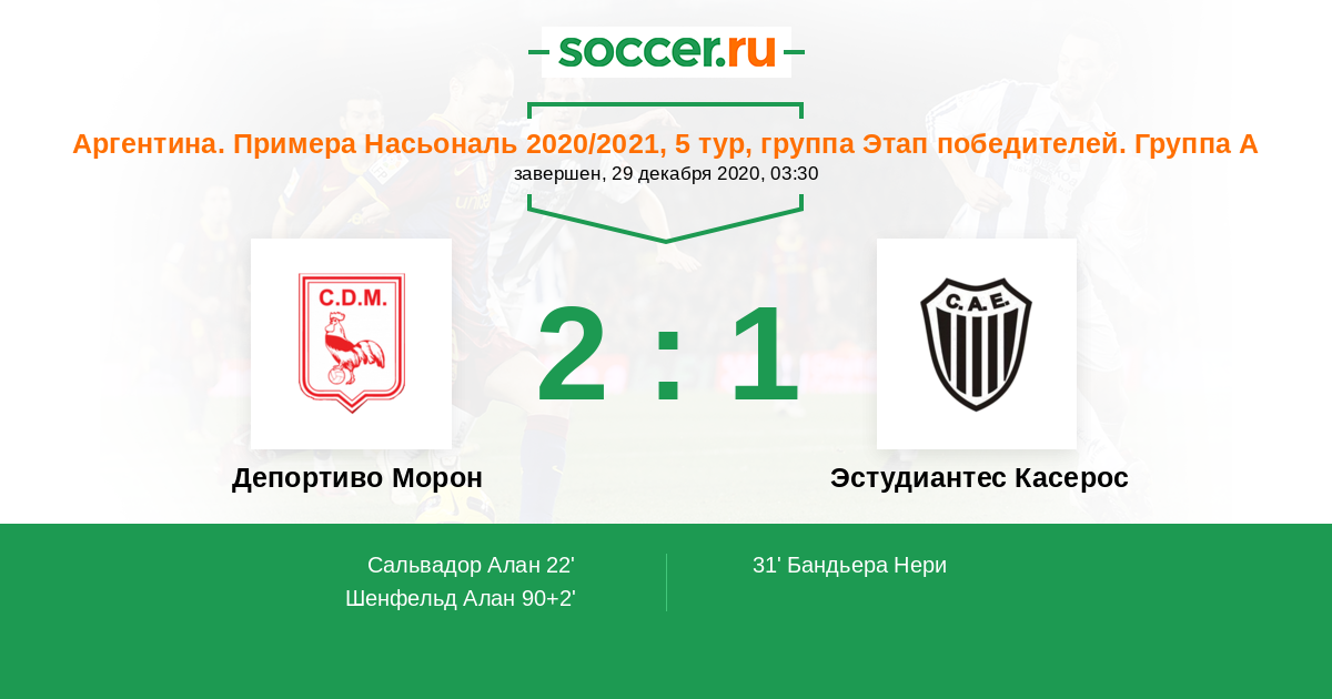 Аргентина. Примера Б Метро 01.04.2012 Депортиво Морон Логотип футбольный клуб Депортиво Морон 1:2 Логотип футбольный клуб Эстудиантес Касерос Эстудиантес Касерос