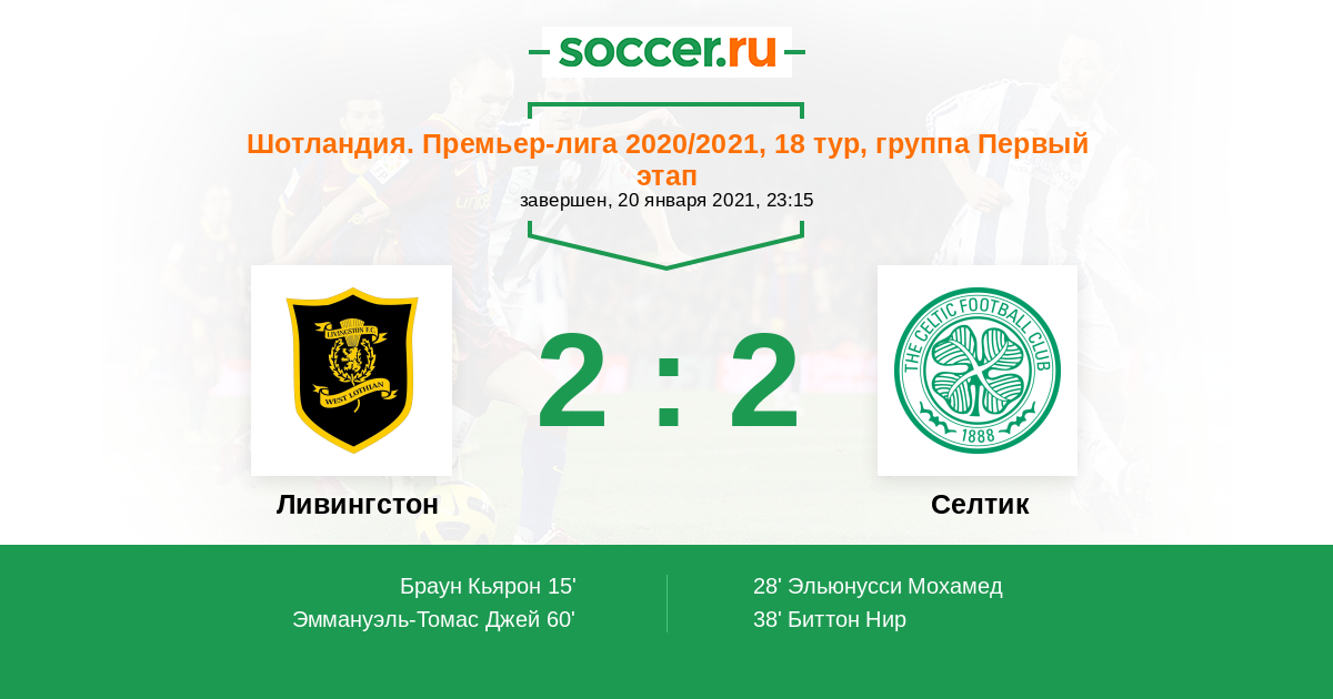 Шотландия. Премьер-Лига 19.09.2020 Селтик Логотип футбольный клуб Селтик (Глазго) 3:2 Логотип футбольный клуб Ливингстон Ливингстон