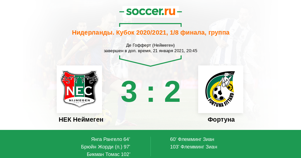 Нидерланды. Кубок 19.10.2022 НЕК Неймеген Логотип футбольный клуб НЕК Неймеген 3:2 Логотип футбольный клуб Фортуна (Ситтард) Фортуна