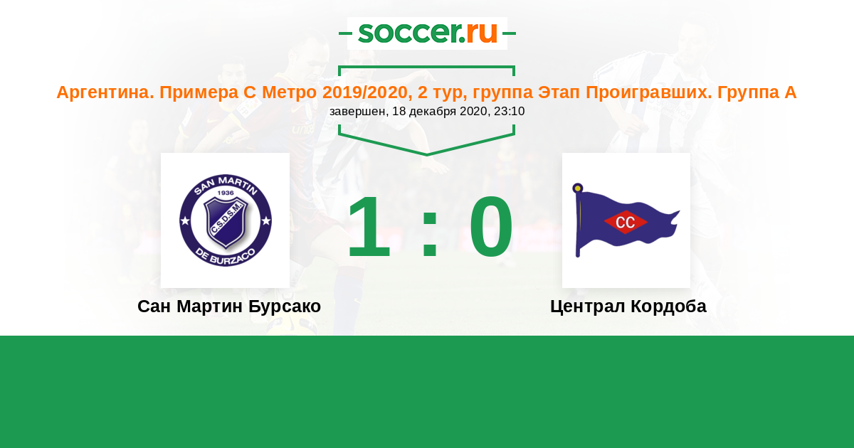 Аргентина. Примера С Метро 19.10.2019 Централ Кордоба Логотип футбольный клуб Централ Кордоба 3:0 Логотип футбольный клуб Сан Мартин Бурсако Сан Мартин Бурсако