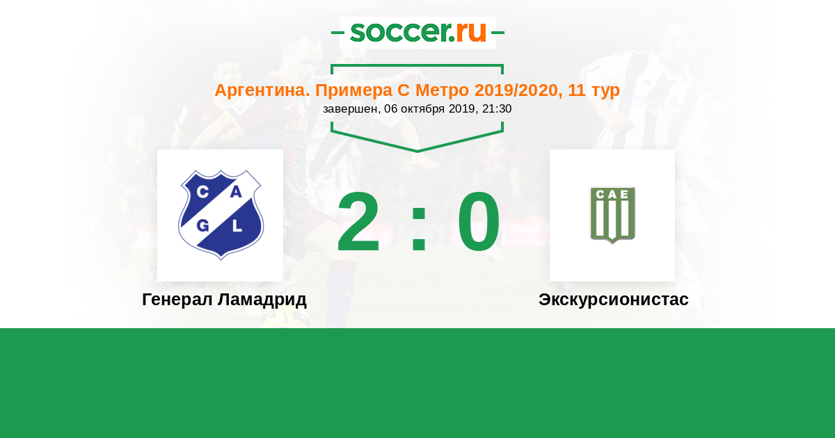 Аргентина. Примера С Метро 20.04.2019 Экскурсионистас Логотип футбольный клуб Экскурсионистас (Буэнос-Айрес) 1:0 Логотип Генерал Ламадрид (Буэнос-Айрес) Генерал Ламадрид