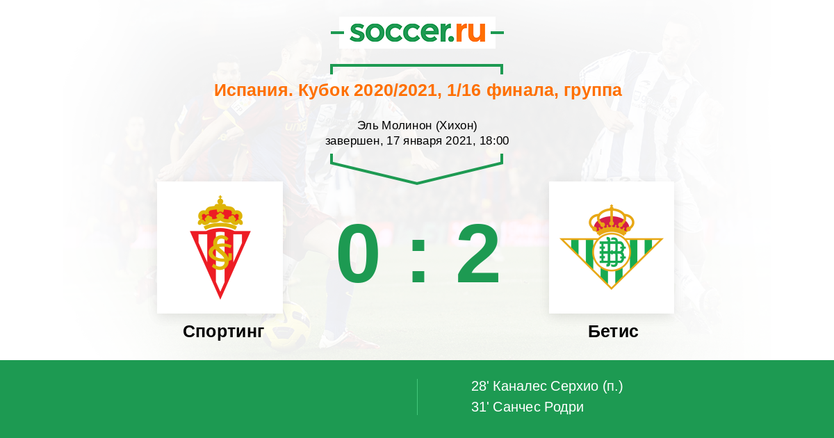 Испания. Примера 22.01.2017 Бетис Логотип футбольный клуб Бетис (Севилья) 0:0 Логотип футбольный клуб Спортинг (Хихон) Спортинг