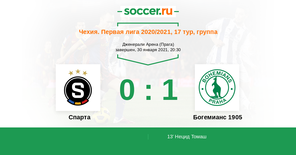 Чехия. Первая Лига 19.02.2017 Спарта Логотип футбольный клуб Спарта (Прага) 1:0 Логотип футбольный клуб Богемианс 1905 (Прага) Богемианс 1905