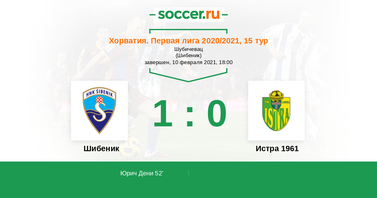 Хорватия. Первая лига 26.09.2020 Истра 1961 Логотип футбольный клуб Истра 1961 (Пула) 1:0 Логотип футбольный клуб Шибеник Шибеник