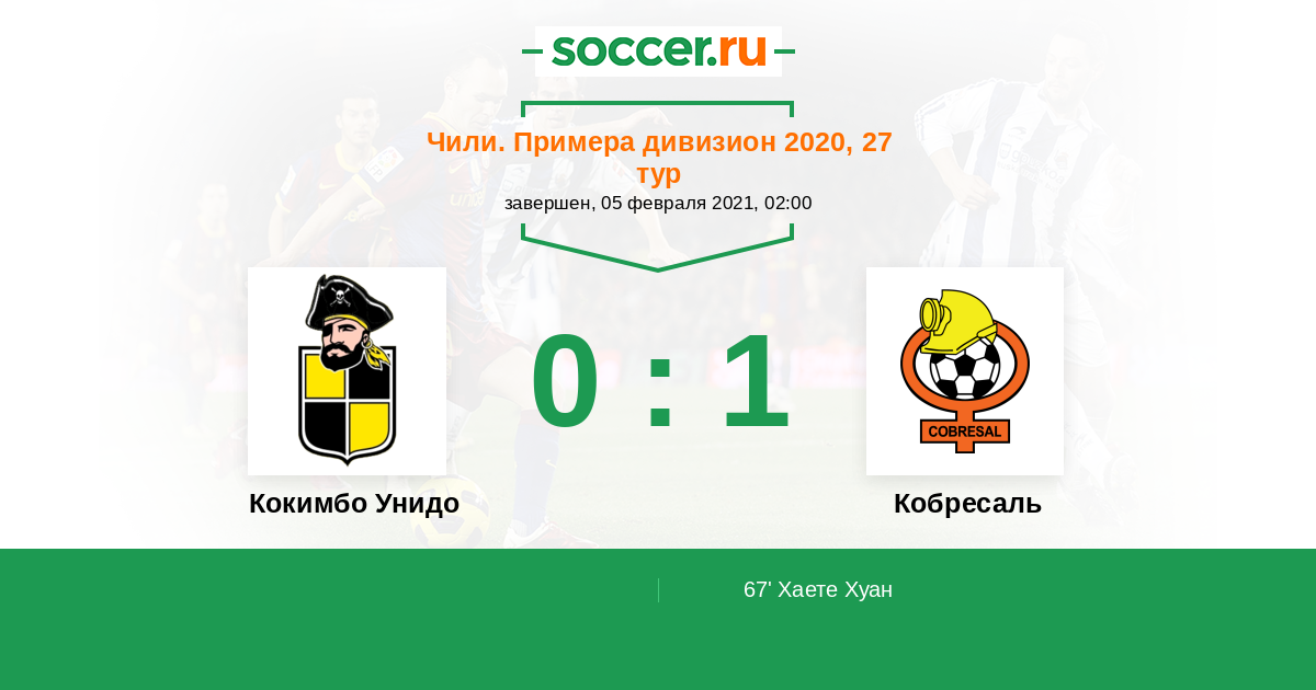 Чили. Примера дивизион 14.10.2020 Кобресаль Логотип футбольный клуб Кобресаль (Эль-Сальвадор) 0:1 Логотип футбольный клуб Кокимбо Унидо Кокимбо Унидо