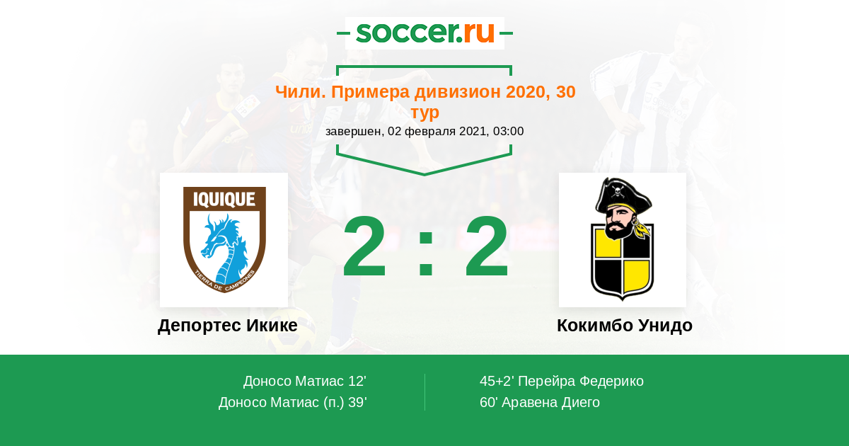 Чили. Примера дивизион 15.02.2025 Депортес Икике Логотип футбольный клуб Депортес Икике 0:3 Логотип футбольный клуб Кокимбо Унидо Кокимбо Унидо
