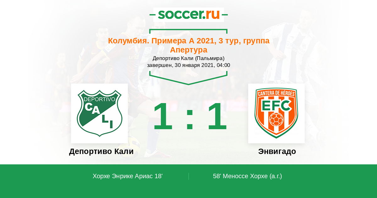 Колумбия. Примера А 06.02.2022 Энвигадо Логотип футбольный клуб Энвигадо 1:0 Логотип футбольный клуб Депортиво Кали Депортиво Кали