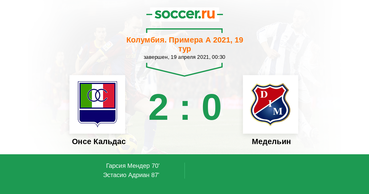 Колумбия. Примера А 20.04.2025 Медельин Логотип футбольный клуб Медельин 2:0 Логотип футбольный клуб Онсе Кальдас (Манисалес) Онсе Кальдас