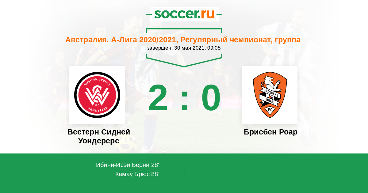 Австралия. А-Лига 16.04.2021 Вестерн Сидней Уондерерс Логотип футбольный клуб Вестерн Сидней Уондерерс 1:2 Логотип футбольный клуб Брисбен Роар Брисбен Роар