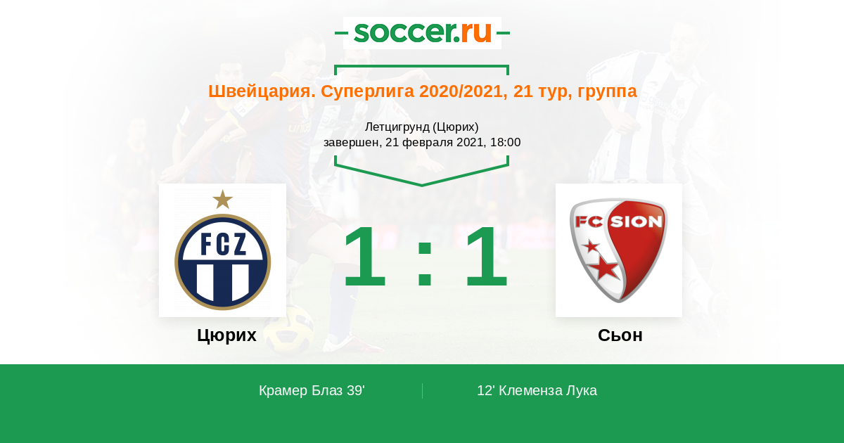 Швейцария. Суперлига 20.02.2022 Сьон Логотип футбольный клуб Сьон 1:1 Логотип футбольный клуб Цюрих Цюрих
