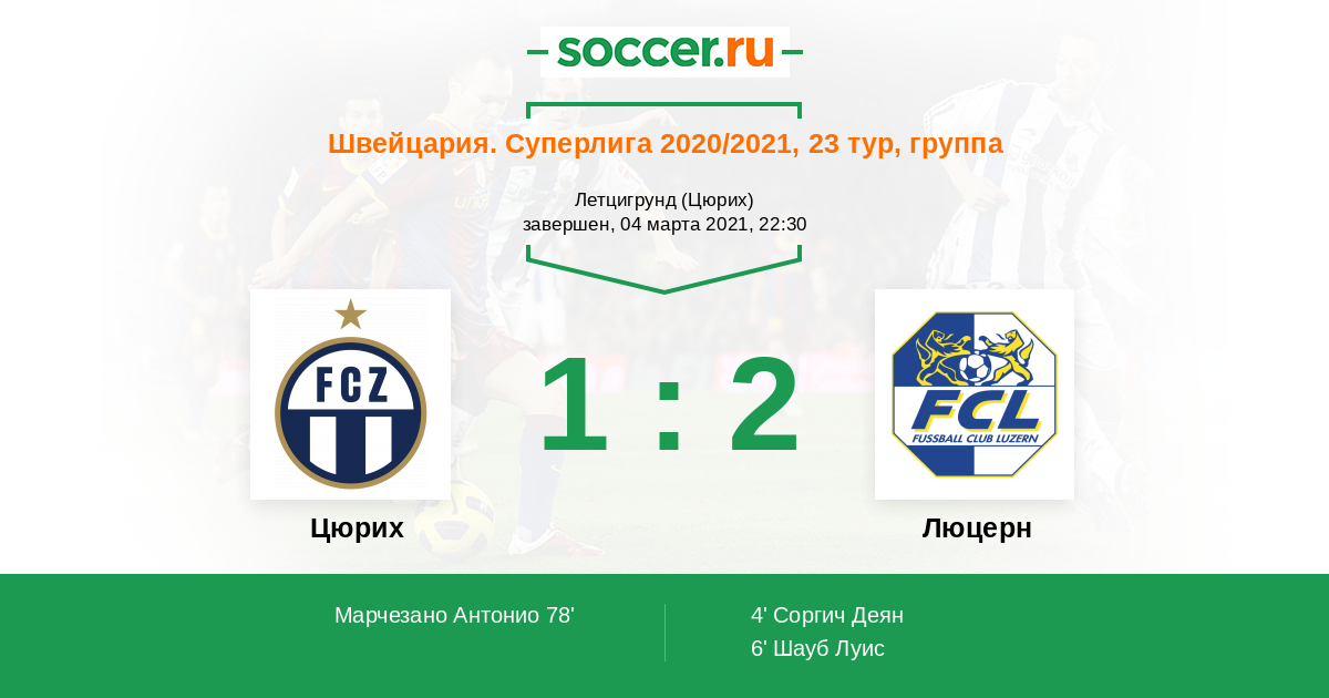 Швейцария. Суперлига 02.03.2022 Люцерн Логотип футбольный клуб Люцерн 0:2 Логотип футбольный клуб Цюрих Цюрих