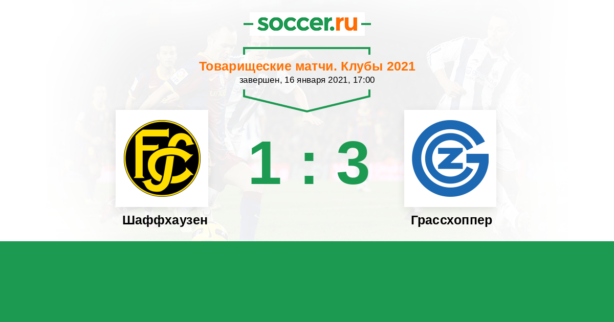 Товарищеские матчи. Клубы 31.01.2018 Грассхоппер Логотип футбольный клуб Грассхоппер (Цюрих) 2:1 Логотип футбольный клуб Шаффхаузен Шаффхаузен