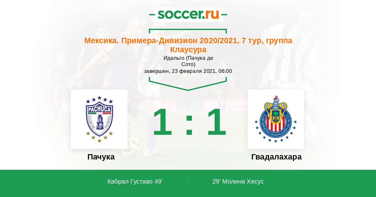 Мексика. Примера-Дивизион 10.05.2021 Пачука Логотип футбольный клуб Пачука 4:2 Логотип футбольный клуб Гвадалахара Гвадалахара