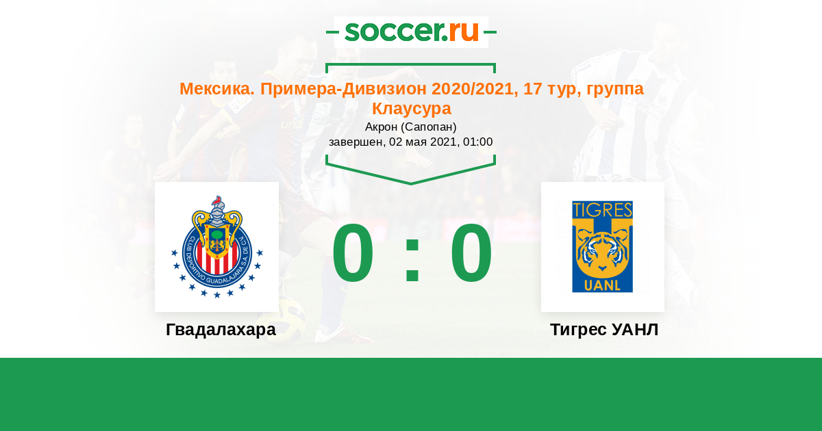 Мексика. Примера-Дивизион 26.05.2023 Тигрес УАНЛ Логотип футбольный клуб Тигрес УАНЛ (Монтеррей) 0:0 Логотип футбольный клуб Гвадалахара Гвадалахара