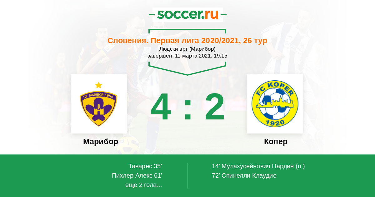 Словения. Первая Лига 26.09.2012 Копер Логотип футбольный клуб Копер 2:3 Логотип футбольный клуб Марибор Марибор