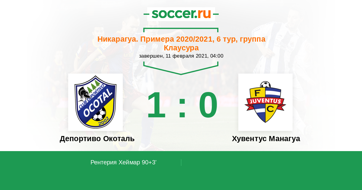 Никарагуа. Примера 01.11.2021 Депортиво Окоталь Логотип футбольный клуб Депортиво Окоталь 1:0 Логотип футбольный клуб Хувентус Манагуа Хувентус Манагуа