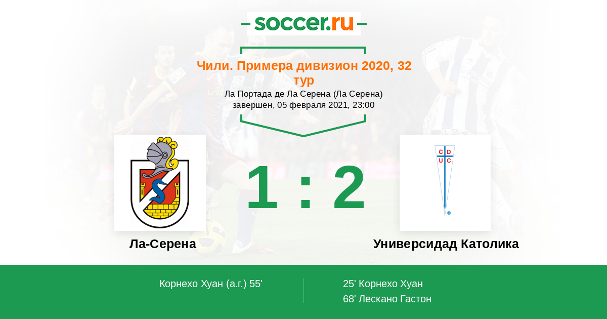 Чили. Примера дивизион 02.11.2020 Универсидад Католика Логотип футбольный клуб Универсидад Католика (Сантьяго) 3:0 Логотип футбольный клуб Ла-Серена Ла-Серена