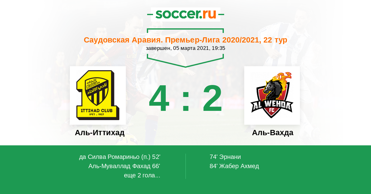Саудовская Аравия. Премьер-Лига 06.12.2020 Аль-Вахда Логотип футбольный клуб Аль-Вахда (Мекка) 1:2 Логотип футбольный клуб Аль-Иттихад (Джидда) Аль-Иттихад